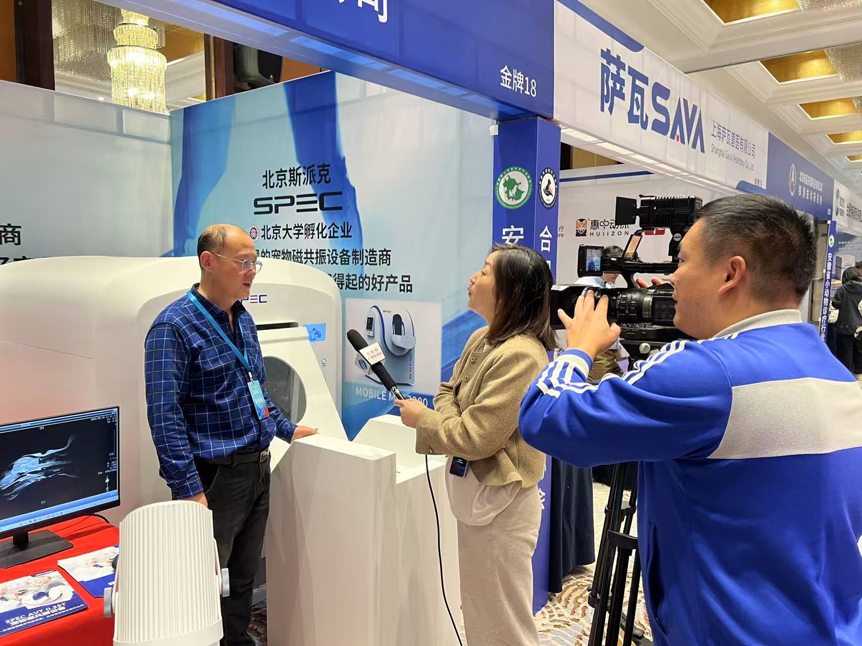 斯派克对市场痛点的精准回应,在展会现场引起了强烈反响,并吸引了权威媒体的目光。安徽电视台记者在展位现场进行了专题采访,重点围绕“如何解决中小型宠物医院引进高端影像设备的实际困难”等核心问题展开。斯派克代表在采访中详细阐释了“轻量化、高性价比、智能化”的设计哲学,帮助医院以合理投入构建覆盖超90%临床需求的完整影像诊断能力。